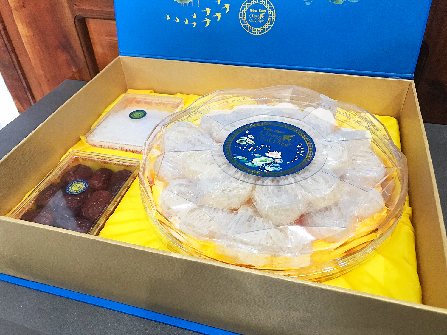 Mình đã nhận được sản phẩm rồi, yến được đóng trong hộp sang trọng, tinh tế, có thêm táo và đường phèn nữa.